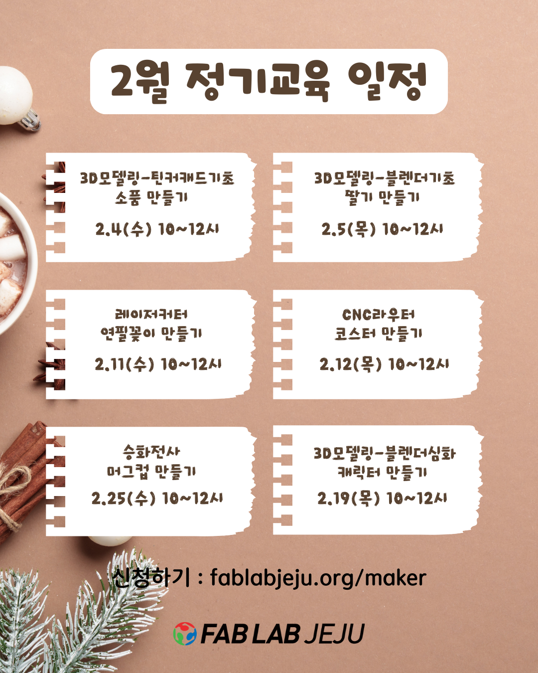 팹랩제주는 매월 입문자들을 위해 디지털 제작장비 활용법을 무료로 운영합니다.